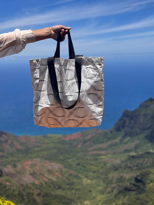 Tyvek Tote Bag - Sawtooth Taupe/Black/Pink Floral